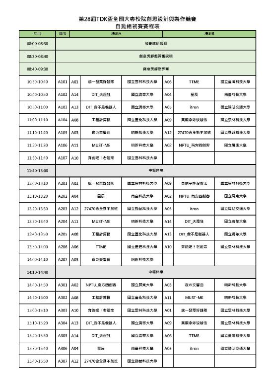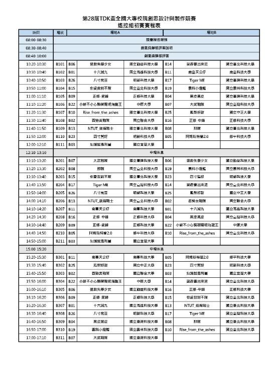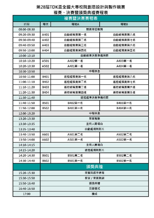 >>28thTDK 複賽、決賽暨頒獎典禮賽程<<
